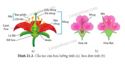 Bộ phận sinh sản bao gồm nhị hoa và lá noãn hay còn gọi là nhụy. Trong đó: