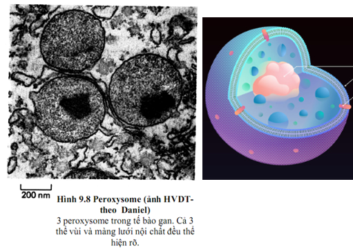 Peroxisome là bào quan hình cầu, bao bọc bởi màng đơn mỏng. Bào quan này chứa peroxide (H2O2) biến đổi chất độc thành dạng không độc, phân giải chất béo thành lipid và cholesterol.