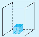 Trong hình bên, hình lập phương nằm hoàn toàn trong hình hộp chữ nhật. Ta nói: Thể tích hình lập phương bé lớn hơn thể tích hình hộp chữ nhật hay thể tích hình hộp chữ nhật lớn hơn thể tích hình lập phương.