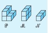 Hình P gồm 6 hình lập phương như nhau. Ta tách hình P thành hai hình M, N: hình M gồm 4 hình lập phương và hình N gồm 2 hình lập phương như thế. Ta nói: Thể tích hình P bằng tổng thể tích các hình M và N.