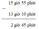 Vậy: 15 giờ 55 phút - 13 giờ 10 phút = 2 giờ 45 phút.