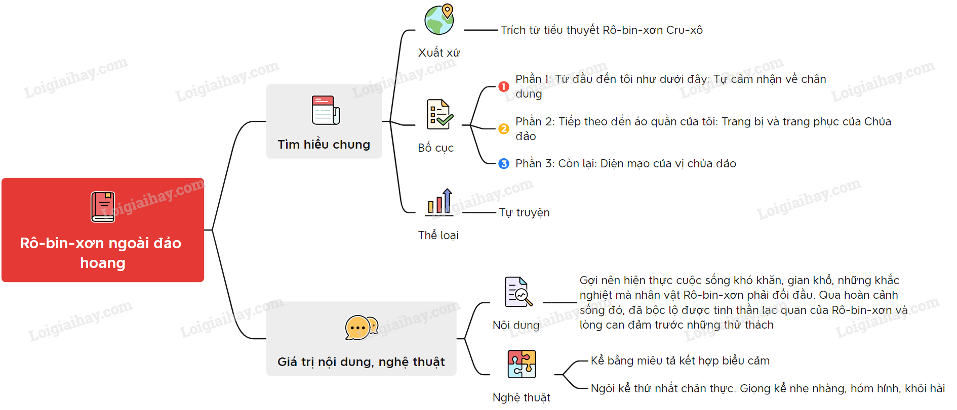 Sơ đồ về đoạn trích "Rô-bin-xơn ngoài đảo hoang":