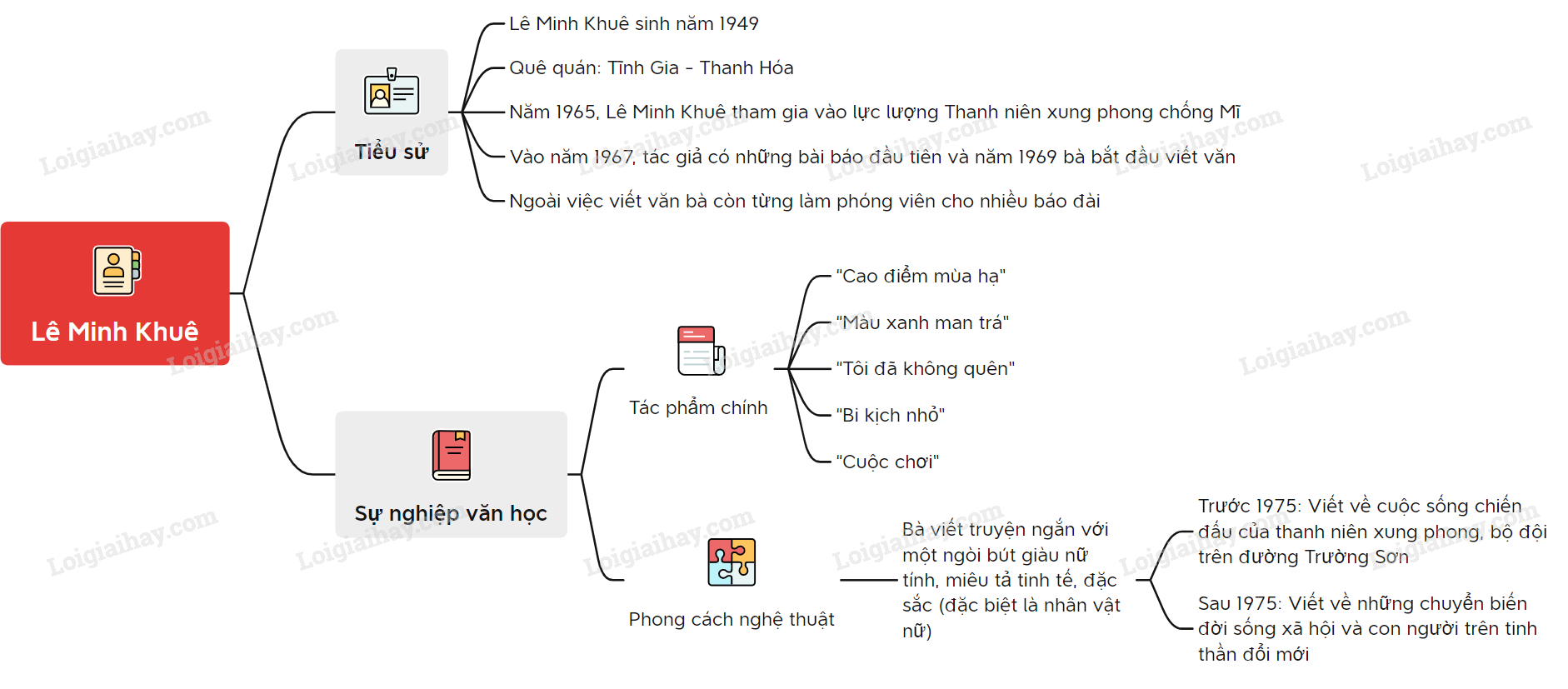 Sơ đồ tư duy về nhà văn Lê Minh Khuê: