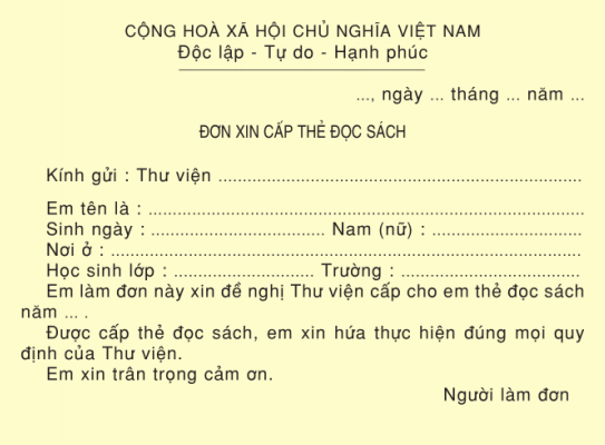 Em làm đơn này đề nghị Thư viện cấp cho em thẻ đọc sách năm học 2017 - 2018