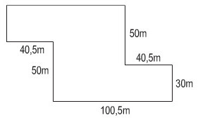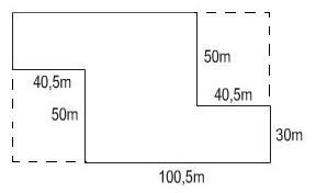 Diện tích của khu đất bằng diện tích hình chữ nhật bao phủ trừ đi diện tích của hai hình chữ nhật nhỏ với các kích thước là 50m và 40,5m.
