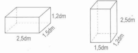 Chú ý: Hai hình hộp chữ nhật đã cho có một hình đặt nằm, một hình đặt đứng nhưng hai hình hộp chữ nhật đó đều có ba kích thước là 2,5dm; 1,5dm; và 1,2dm nên có diện tích toàn phần bằng nhau nhưng diện tích xung quanh khác nhau.