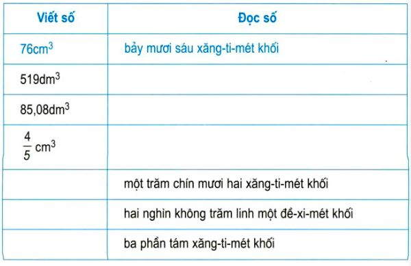 Để đọc (hoặc viết) các số đo thể tích ta đọc (hoặc viết) số đo trước rồi đọc (hoặc viết) tên đơn vị đo thể tích.