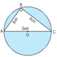 - Diện tích phần đã tô màu của hình tròn = diện tích hình tròn tâm O \(-\) diện tích tam giác ABC.