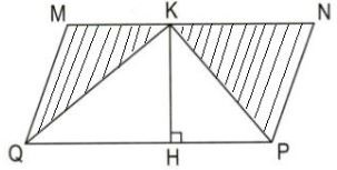 (Giải thích: Tổng diện tích hai hình tam giác MKQ và KNP là phần được gạch chéo nên bằng diện tích hình bình hành MNPQ trừ đi diện tích tam giác KQP).