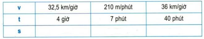Cột 2: \(s = 210 \times 7 = 1470\;(m)\)\(= 1,47 \;(km)\)