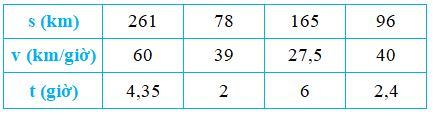 Muốn tính thời gian ta lấy quãng đường chia cho vận tốc, hay \(t = s : v\).