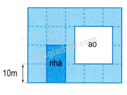 - Diện tích làm ao bằng diện tích hình vuông có độ dài cạnh là 20m. Để tính diện tích đào ao ta lấy cạnh nhân với cạnh.