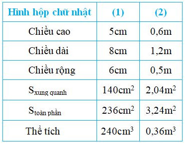 - Hình hộp chữ nhật: