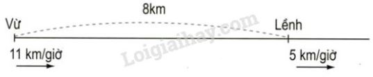 Cùng một lúc, Vừ đi ngựa với vận tốc 11 km/giờ, Lềnh đi bộ với vận tốc 5km/giờ và đi cùng chiều với Vừ. Biết rằng khi bắt đầu đi Lềnh cách Vừ một quãng đường 8km (xem hình vẽ). Hỏi sau bao nhiêu phút Vừ đuổi kịp Lềnh ?