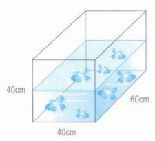 - Tính thể tích bể cá = chiều dài × chiều rộng × chiều cao.
