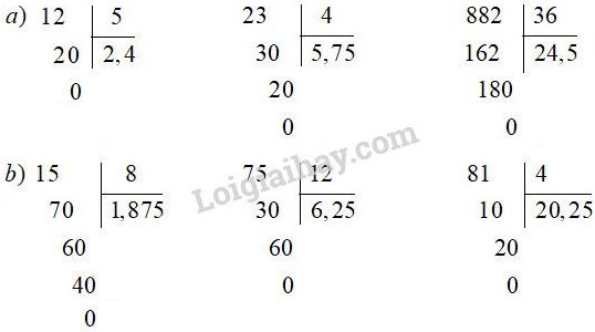 Toán lớp 5 trang 68 Chia một số tự nhiên cho một số tự nhiên mà thương tìm được là một số thập phân