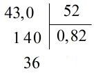 • Đặt tính rồi tính như phép chia \(43,0 : 52\) (chia số thập phân cho số tự nhiên).