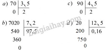 Đặt tính rồi tính: a) 7 : 3,5; b) 702 : 7,2