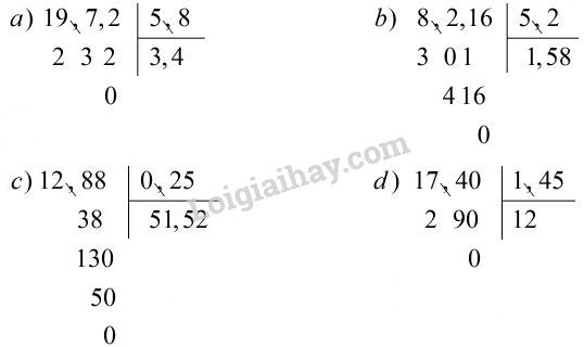 Toán lớp 5 trang 71 Chia một số thập phân cho một số thập phân