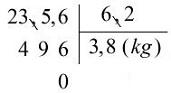 Vậy: \( 23,56 : 6,2 = 3,8\; (kg)\)