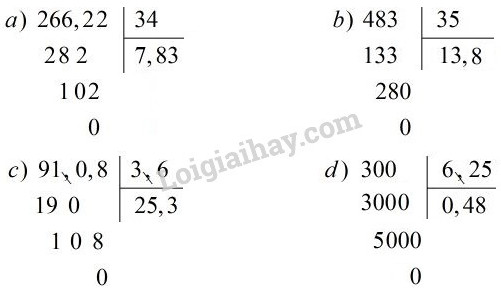 Đặt tính rồi tính : a) 266,22 : 34 ; b) 483 : 35;