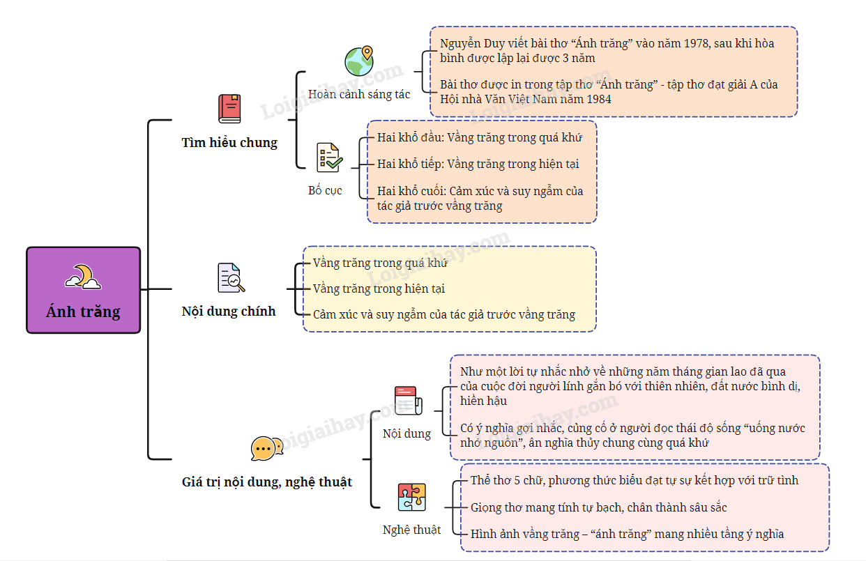 Sơ đồ tư duy về bài thơ "Ánh trăng":