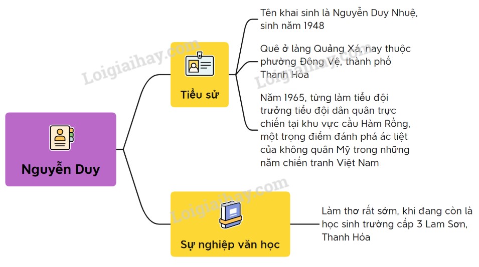 Sơ đồ tư duy về tác giả Nguyễn Duy: