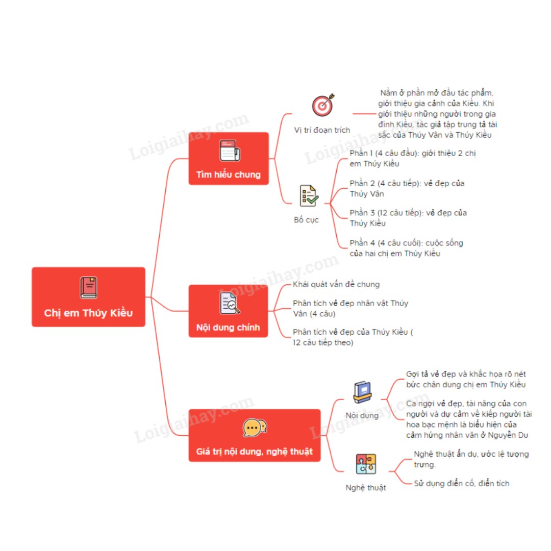Sơ đồ tư duy về đoạn trích "Chị em Thúy Kiều":