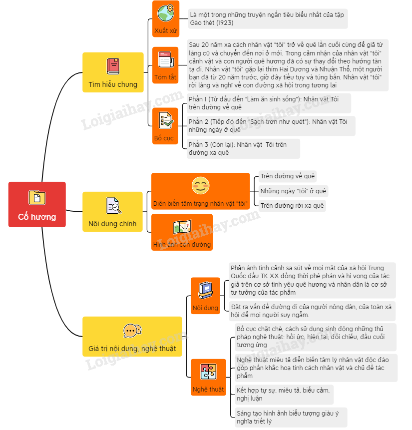 Sơ đồ tư duy về văn bản "Cố hương":