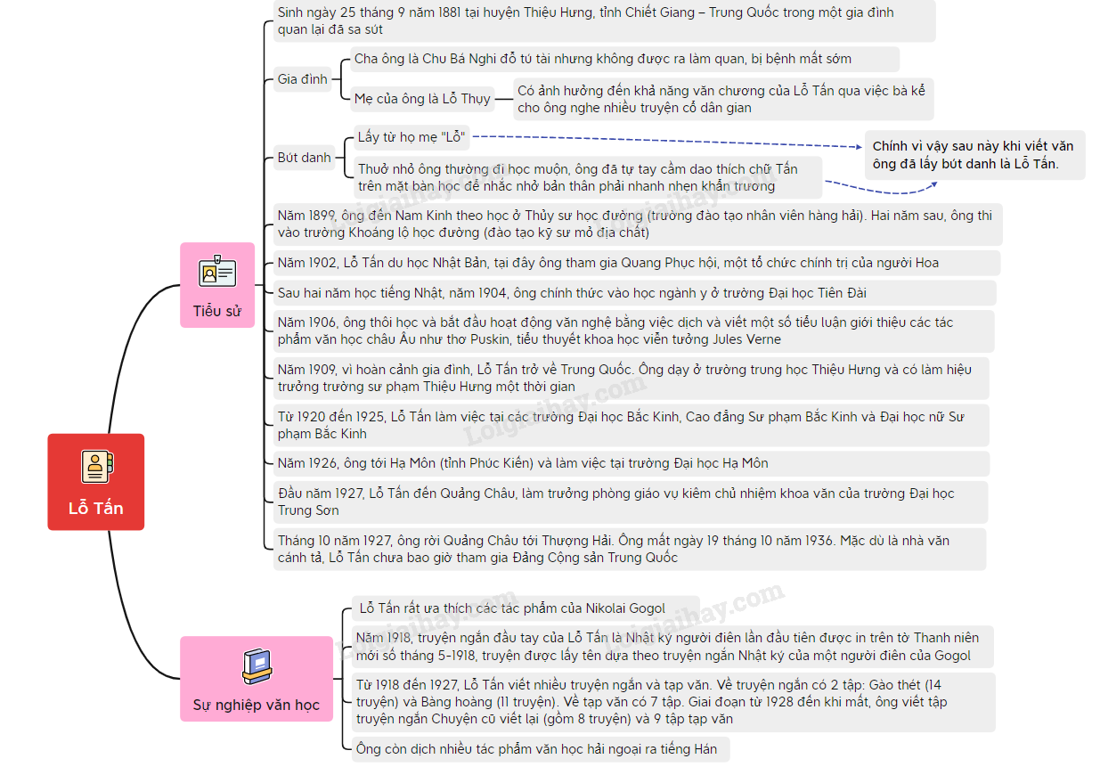 Sơ đồ tư duy về tác giả Lỗ Tấn:
