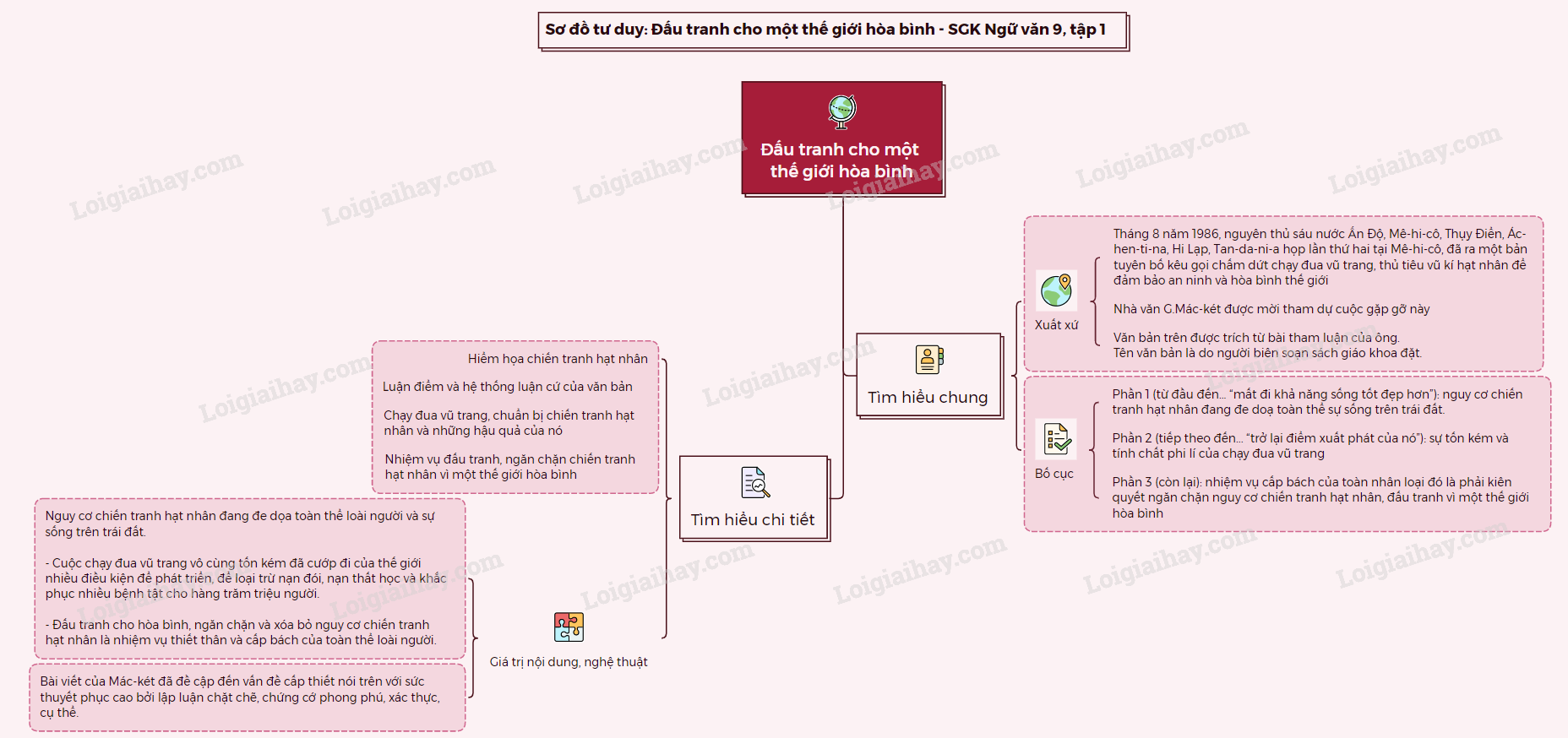 Sơ đồ tư duy văn bản "Đấu tranh cho một thế giới hòa bình":