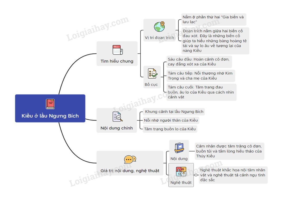 Sơ đồ tư duy về đoạn trích "Kiều ở lầu Ngưng Bích":