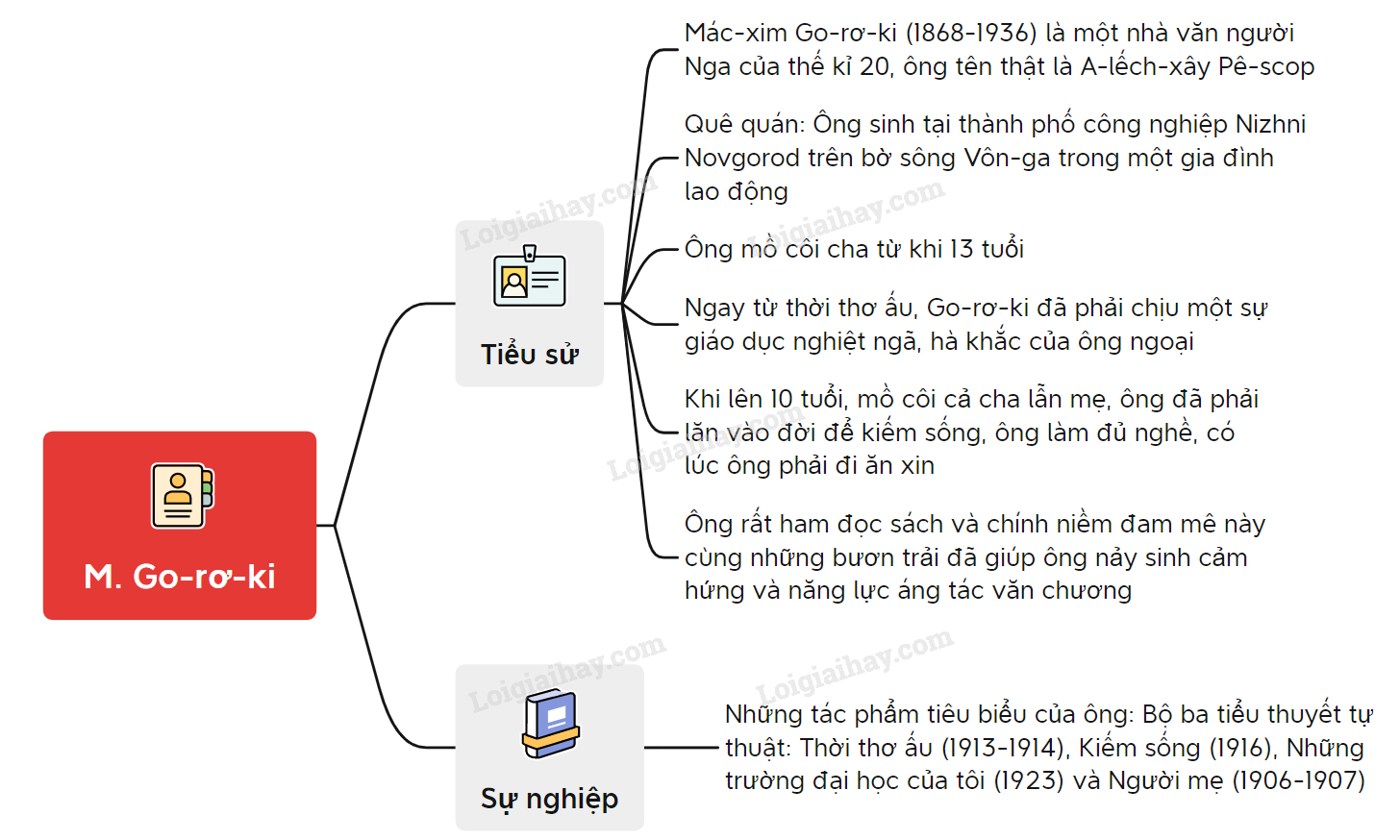 Sơ đồ tư duy về tác giả Mác-xim Go-rơ-ki: