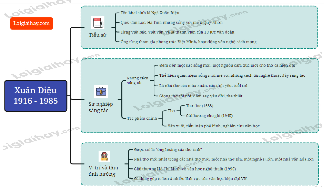 Sơ đồ tư duy - Tác giả Xuân Diệu
