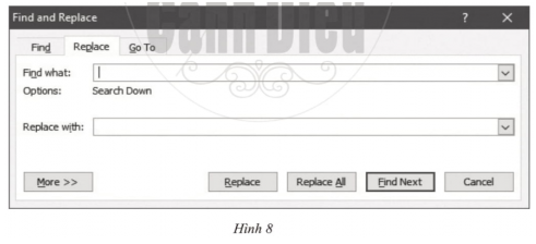 4) Nháy chuột vào lệnh Replace để mở hộp thoại Find and Replace .