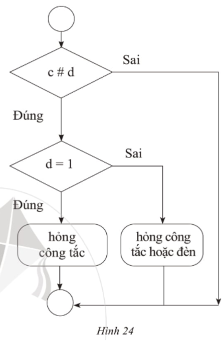 Có thể biểu diễn các trạng thái của hệ thống gồm một công tắc và một đèn bằng hai bit. Bằng cách liệt kê các bước hoặc vẽ sơ đồ khối, hãy mô tả thuật toán nhận biết hệ thống hỏng gì từ giá trị của hai bit đó.