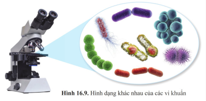 Quan sát hình 16.9 và nêu các hình dạng khác nhau của vi khuẩn.