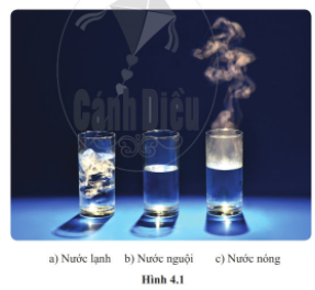 Trả lời câu hỏi mở đầu trang 26 SGK KHTN 6 Cánh diều. Có ba cốc đựng nước như hình 4.1. Theo em, nước trong cốc (b) nóng hơn nước trong cốc nào và lạnh hơn nước trong cốc nào?