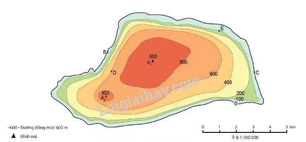 - So sánh độ cao đỉnh núi A1 và A2: A1 cao hơn A2 50 m.