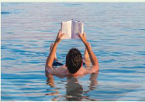 Hình 7. Biển Chết (Tây Nam Á) có độ muối cao đến mức không có loài các nào có thể sinh sống và cơ thể người tự nổi lên mặt nước