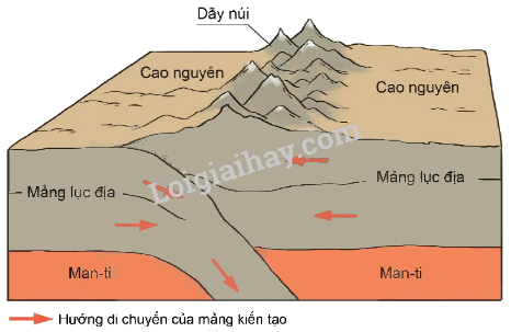 Hình 5. Hiện tượng tạo núi do hai mảng kiến tạo xô vào nhau