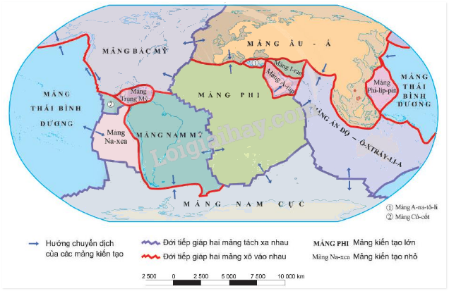 - Xác định nơi tiếp giáp giữa các mảng kiến tạo đang xô vào nhau và giữa các mảng đang tách xa nhau.