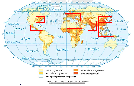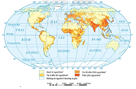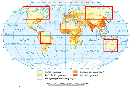 - Xác định các khu vực trên thế giới có mật độ dân số trên 250 người/km 2 và các khu vực có mật độ dân số dưới 5 người/km 2 .