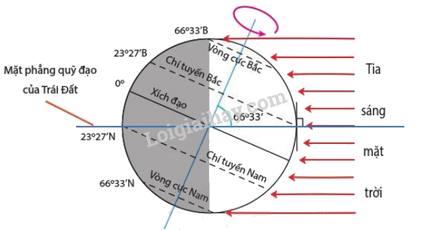 Hình 7.4 Nửa sáng – tối của Trái Đất vào ngày 22-6