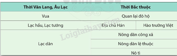 Quan sát bảng trên và đọc thông tin, hãy cho biết sự chuyển biến của xã hội Việt Nam thời Bắc thuộc