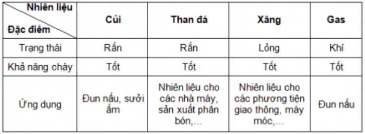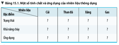 Tìm hiểu một số nhiên liệu sử dụng trong đời sống hằng ngày, em hãy hoàn toàn thông tin theo mẫu bảng 12.1