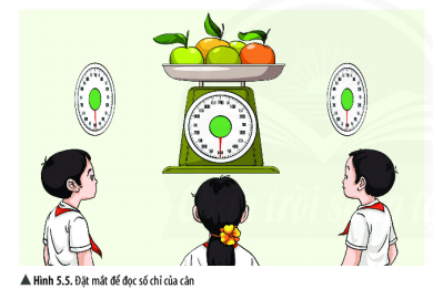 Quan sát hình 5.5 và cho biết cách đặt mắt để đọc khối lượng như thế nào là đúng?