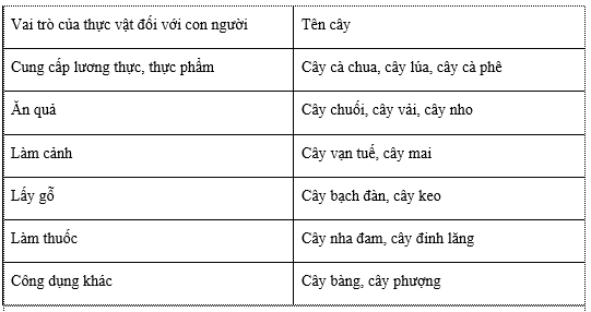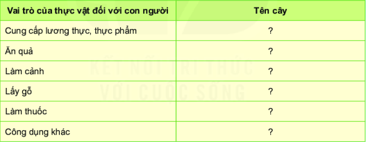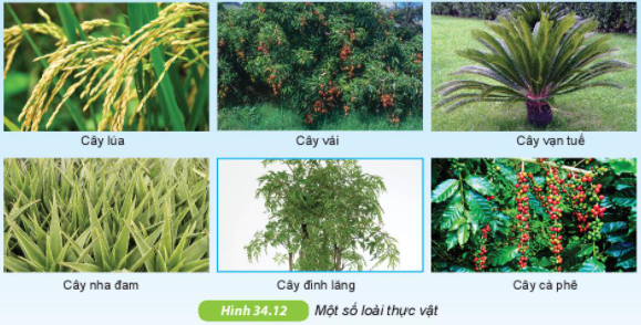 Quan sát Hình 34.12 và hoàn thành bảng theo mẫu sau. Có thể viết thêm các cây mà em biết.