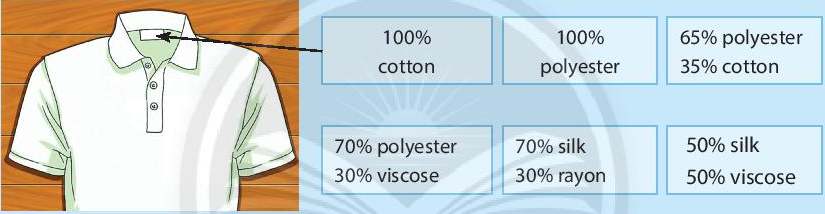 Dưới đây là thông tin thành phần sợi dệt trên một số loại quần áo. Em hãy xác định xem loại nào là vải sợi thiên nhiên, loại nào là vải sợi hóa học, loại nào là vải sợi pha.