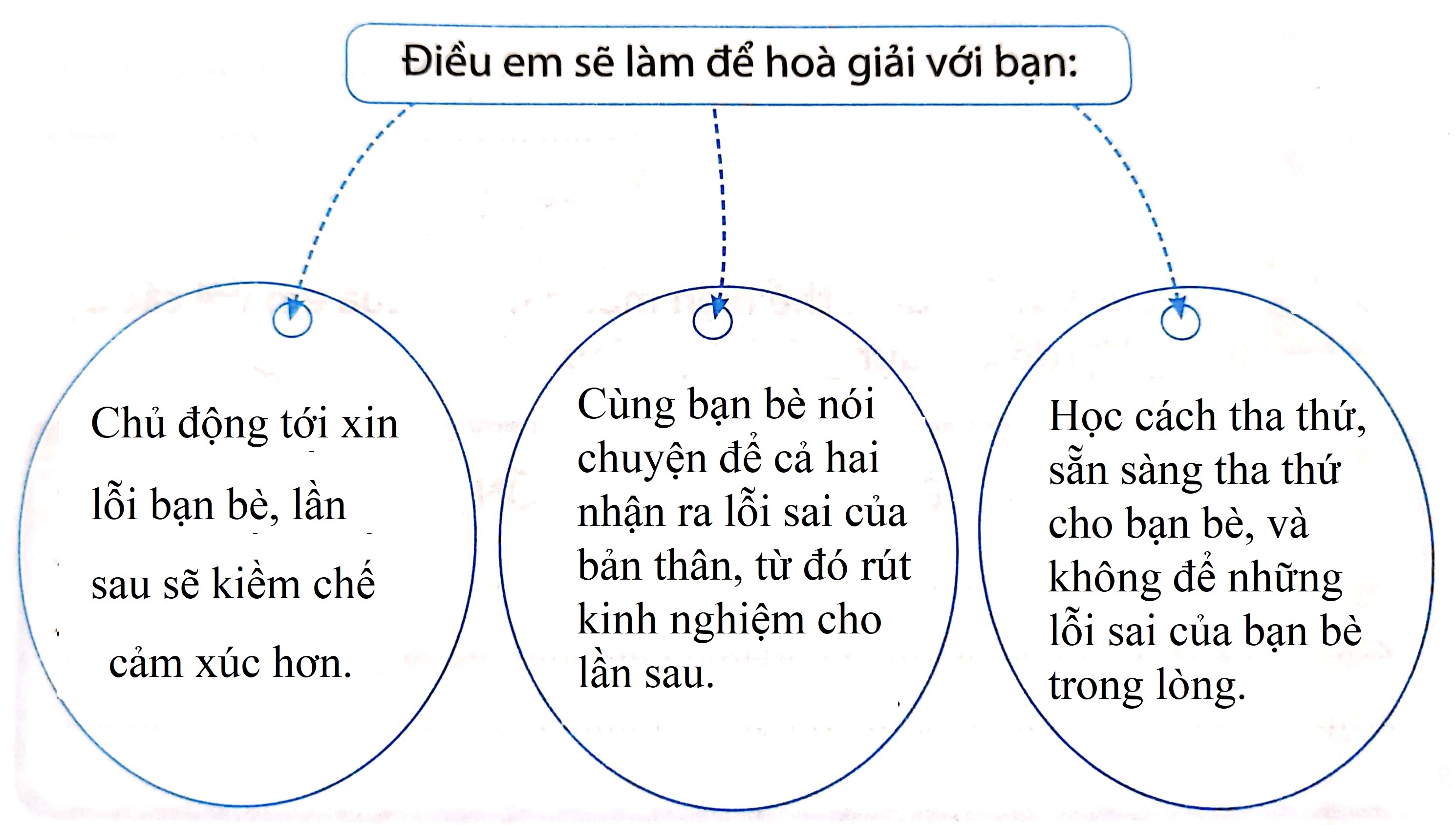 - Nhớ về những lần em và bạn tranh cãi, em có từng chủ động hòa giải với bạn bè chưa? Lúc đó em làm cách nào để mối quan hệ giữa em và bạn trở lại bình thường?